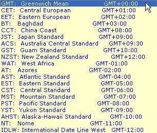 It was suggested to provide a dropdown list on the Time Zone field to prevent entry of 'free text'. A list with the standard ISO Time Zone abbreviations has been provided for.