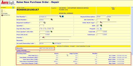 from an Aircraft/Assembly, we store the “findings” in ROT-REMARKS. When this rotable is